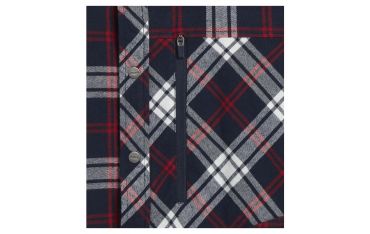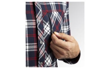 Camicia in flanella con bottoni a pressione, tasca petto con portamatita, tasca posteriore porta oggetti. Toppa di rinforzo su gomito. Carrè posteriore con soffietto per traspirabilità.