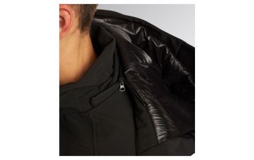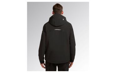 Giacca in softshell con imbottitura leggera, antivento e trattamento idrorepellente. Inserto salvabarba, cappuccio staccabile con doppia regolazione e frontino sagomato. Due tasche laterali e una tasca frontale con zip, dettagli reflex e stampa termonastrata personalizzata Utility. Maniche ergonomiche. Inserti interni in 3D mesh con apertura sul carrè posteriore per una traspirabilità ottimale. Fondo regolabile con coulisse e parte posteriore più lunga per miglior vestibilità.