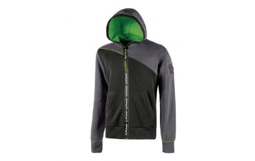 Felpa full zip, con cappuccio regolabile. Chiusura con zip centrale impermeabile e serigrafia “U-Power". Tasche applicate con ingresso obliquo. Polsi e fondo a costine elasticizzate. Inserti in piping fluo elasticizzato.