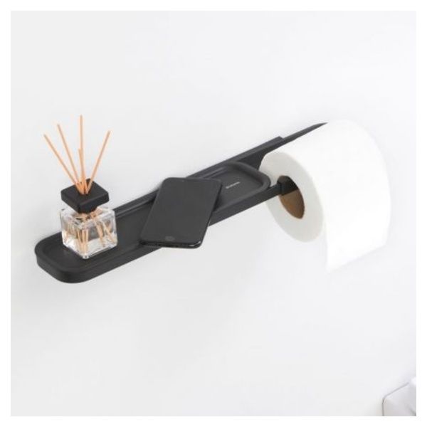 Rendi più bello il tuo bagno con il Porta Rotolo di Carta Igienica con Mensola MindSet di Brabantia Questo design essenziale regge comodamente il rotolo di carta igienica, ma aggiunge immediatamente una piccola mensola per il tuo telefono o altri oggetti. Urrà per l'assistente da bagno!