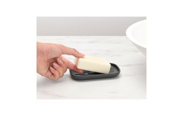 Evita di fare scivoloni quando ti lavi le mani e acquista il portasapone ReNew di Brabantia. Dotato di sporgenze interne per mantenere asciutto il tuo sapone e abbastanza grande da alloggiare un'intera saponetta. Non lasciarti ingannare dal design elegante: la sua base antiscivolo manterrà ben saldo il portasapone nel tuo bagno o in cucina. Addio sapone scivoloso!