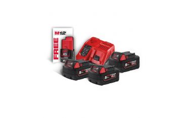 Power Pack Milwaukee M18 NRG-503 Caricabatteria Rapido 3 Batterie 5AH 1 Batteria M12 2AH - 4933451423