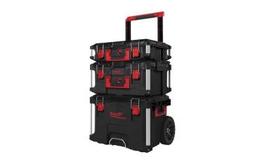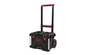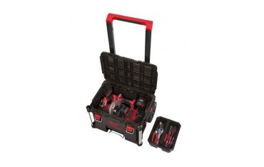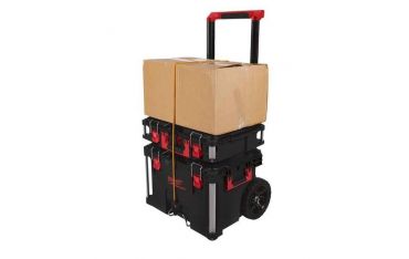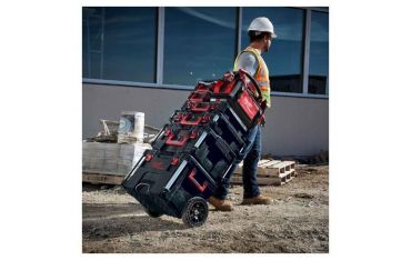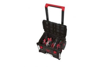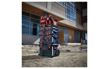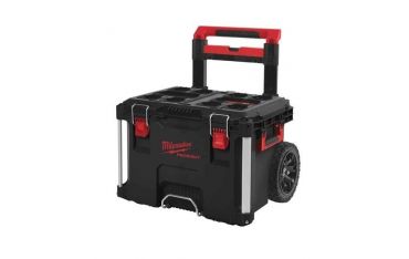 Il Trolley Box porta utensili Packout Milwaukee è costruito con resistente polimero che incrementa la resistenza agli urti sul cantiere con una capacità fino a 113 Kg. La sua struttura è composta da angoli e chiusura in metallo, scomparti interni per riporre gli oggetti, maniglia estendibile, ruote da 9" e sistema di protezione IP65 da pioggia e detriti. Predisposto per il Sistema ONE-KEY TICK.
