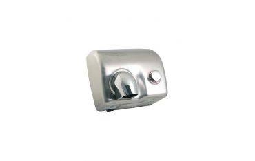 Asciugamani elettrico ad aria calda ad elevate prestazioni ed ingombro ridotto con azionamento a pulsante, munito di bocchetta erogazione aria orientabile (versione opzionale con bocchetta fissa).