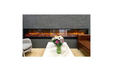Imponente caminetto elettrico da incasso o appoggio modello Etna, 300 cm di lunghezza, effetto fiamma realizzato mediante LED e regolabile come intensità.