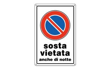 Cartello segnaletico sosta vietata anche di notte
