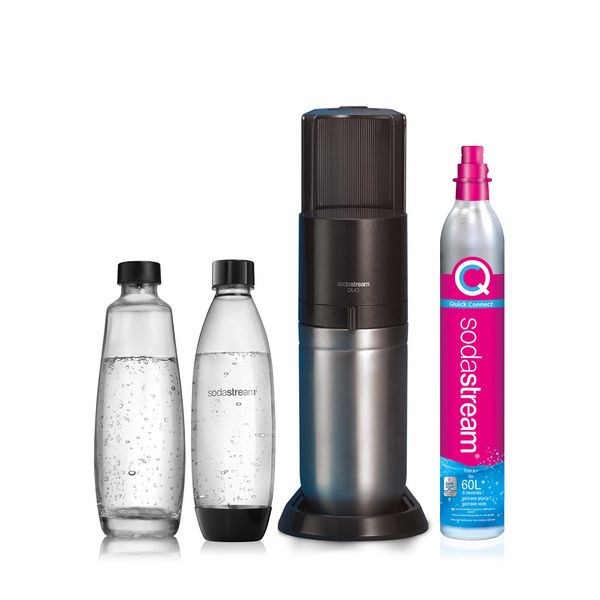 Sodastream Duo è il gasatore SodaStream con il nuovo attacco rapido del cilindro gas e doppia bottiglia in vetro e PET lavabile in lavastoviglie. Grazie al design più compatto e ancor più elegante si adatta perfettamente ad ogni cucina.