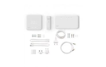 Sensore di Temperatura Wireless Tado°, Radioricevitore Tado°, Internet Bridge Tado°, 3 batterie AAA, 2 x 2 viti di fissaggio, 2 x 2 tasselli, 2 cuscinetti adesivi, 3-cavo trifilare, 2 morsetti isolanti, adattatore di alimentazione per UK, alimentatore USB, adattatore di alimentazione per UE, cavo USB, cavo Ethernet, etichette per il cablaggio, Guida introduttiva, Guida per l'installazione, 6 Guide per installatori professionisti, 3 x informazioni sulla normativa.