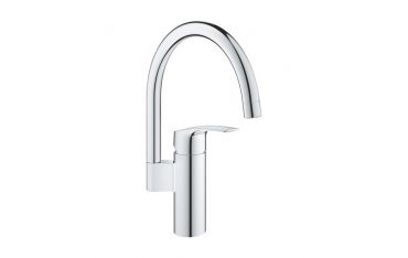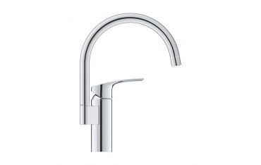Scopri quanto può essere utile un rubinetto ben progettato e pratico in cucina e prova il miscelatore monocomando per lavello GROHE Eurosmart. GROHE Eurosmart è un classico del design per la cucina, ora rinnovato e ripensato con un sottile profilo moderno e una bocca più alta del 35% per migliorare il comfort dell’utente. Progettato per installazione monoforo, questo miscelatore monocomando possiede un’alta bocca a C girevole che ruota fluidamente a 150°, perfetta per creare un ambiente di lavoro flessibile senza urtare le pareti.