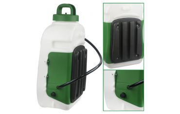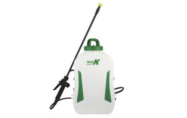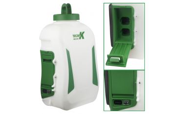 Irroratrice TecnoK a batteria al litio da 14.4 V - 1.5 Ah, pressione max pompa 6,2 bar, pressione regolabile in lancia 2,7-5,5 bar, distanza max di irrorazione 7,5 m.