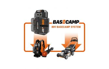 Come centrale elettrica mobile, il sistema Worx Basecamp può essere rimosso con un solo pulsante per essere condiviso con il soffiatore a zaino da 80V. È inoltre possibile condividere le batterie del Basecamp con altri utensili PowerShare da 20V, 40V e 80V, con un'estrema convenienza economica.