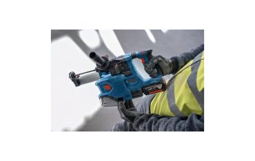 Per forare nel calcestruzzo, utilizzate l’aspiratore GDE 18V-12 Professional esclusivamente con il martello perforatore GBH 18V-22 Professional. Utilizzandoli in combinazione come un unico sistema, ne apprezzerete il peso ridotto e la pratica foratura a percussione con fissaggio dell’aspiratore con un semplice scatto, per lavorare a soffitto senza fatica.