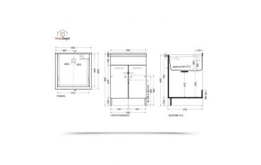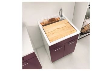 Il mobile si presenta in truciolare nobilitato da 18 mm, con frontali in laminato lucido melanzana. L'apertura delle 2 ante è con maniglia cromata. Viene fornito di tavola lavapanni in legno massello, sifone e troppopieno.