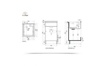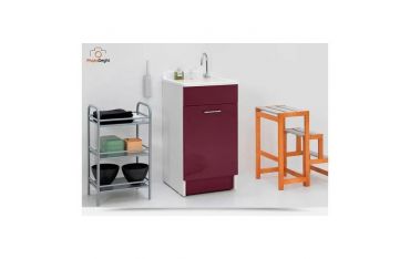 Il mobile si presenta in truciolare nobilitato da 18 mm, con frontali in laminato lucido melanzana. L'apertura dell'anta è con maniglia cromata. Viene fornito di tavola lavapanni in legno massello, sifone e troppopieno.