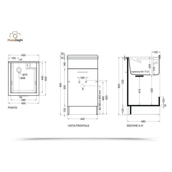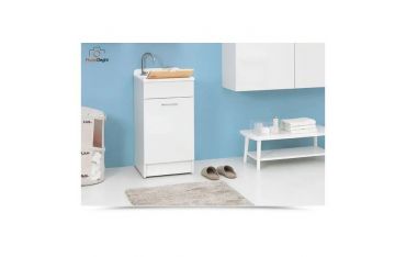 Il mobile si presenta in truciolare nobilitato da 18 mm, con frontali in laminato lucido bianco. L'apertura dell'anta è con maniglia cromata. Viene fornito di tavola lavapanni in legno massello, sifone e troppopieno.