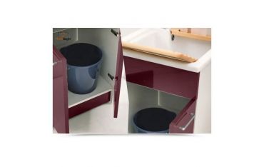Il mobile si presenta in truciolare nobilitato da 18 mm, con frontali in laminato lucido melanzana. L'apertura delle 2 ante è con maniglia cromata. Viene fornito di tavola lavapanni in legno massello, sifone e troppopieno.