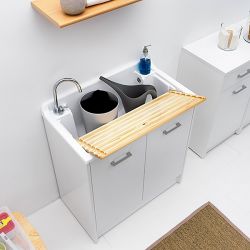 In una lavanderia non può certamente mancare un pratico lavapanni dove poter curare l'igiene di tutta la casa. Funzionale e salvaspazio, la linea Domestica ha dato il nome alla praticità e compattezza del mobile lavapanni multiuso.