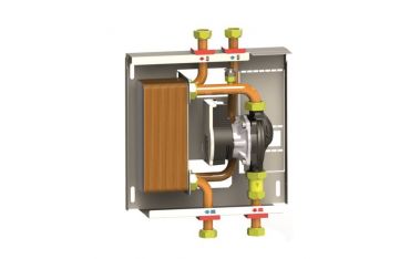 Il modulo è munito da uno o due circolatori, uno scambiatore, una valvola di sfogo aria, una valvola di non ritorno e kit di fissaggio a parete.