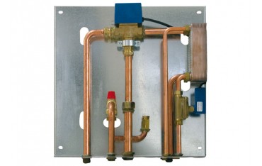 Kit d'installazione a vaso chiuso per termocamini, termostufe e caldaie a pellet, per produzione istantanea di acqua sanitaria.