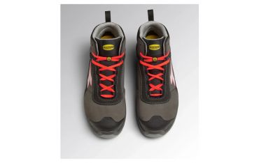 Calzatura di sicurezza mid-cut S3 in pelle crosta, idrorepellente con tecnologia di ammortizzazione Stable Impact System. Puntale in alluminio 200J. Calzata 11. Fodera Air Mesh tridimensionale in 100% poliestere con antiscalzante in microfibra, K-SOLE, plantare in PU foam estraibile, traspirante e con carboni attivi. ESD. Protezione della punta e del tallone in TPU.