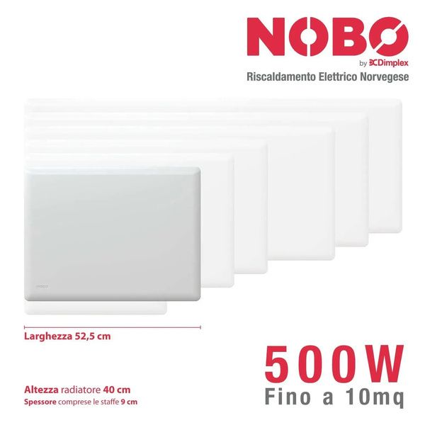 Radiatore Elettrico Norvegese NOBO TOP 500W per Ambienti Fino a 10 mq con Termostato NCU-2Te - E82440005