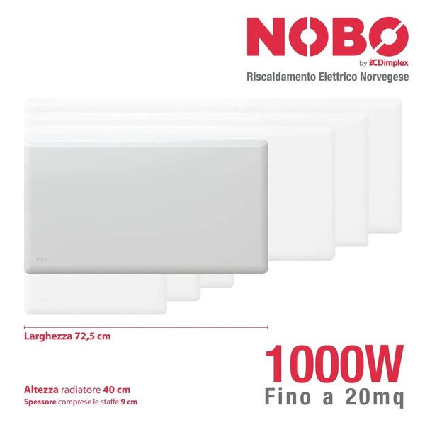 Radiatore Elettrico Norvegese NOBO TOP 1000W per Ambienti Fino a 20 mq con Termostato NCU-2Te - E82440010
