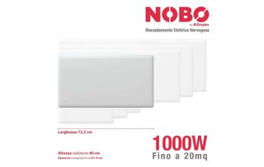 I radiatori elettrici norvegesi NOBO sono un sistema di riscaldamento convezione naturale ed a basso consumo. I corpi riscaldanti sono costituiti da una resistenza con ampia superficie di scambio termico e da un termostato digitale innovativo.