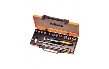 Assortimento di 11 chiavi 1/2" bussola esagonali e 3 accessori in cassetta in lamiera (10 - 13 - 14 - 15 - 16 - 17 - 18 - 19 - 22 - 24 - 27 mm)
