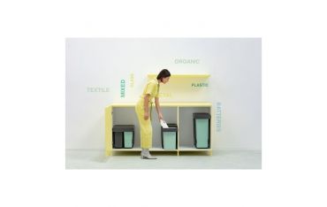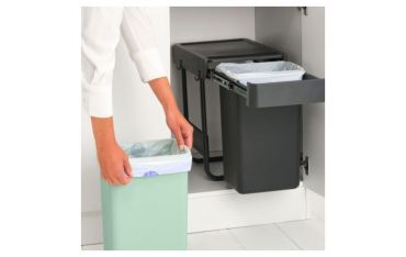 Raddoppia la capacità di separazione dei rifiuti senza occupare altro spazio sul pavimento, con la pattumiera da incasso Sort & Go Brabantia 2 x 15 litri. Ideata per nascondersi nel mobile, con telaio autoportante facile da installare. (autoportante, evita che si danneggi l’anta!). Il set di pattumiere si adatta alla maggior parte dei mobili da cucina, con apertura dell’anta sia a sinistra che a destra. Dispone di uno spazio di appoggio nella parte superiore e ganci laterali per un'organizzazione extra. Dotato di binari telescopici, così puoi estrarli completamente con una sola mano. Naturalmente sono facili da pulire, estrarre dal telaio e svuotare. Un set straordinario.